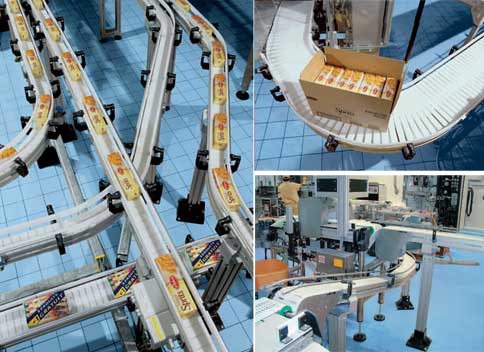 在食品工業中有嚴格的衛生規定,在這個行業中,輸送系統VarioFlow S絕對是您的首選,因為,除鋁材質款式之外,現在我們還為您提供有維護方便的不銹鋼款式—完全符合衛生和潔凈性的高要求。另一個優點是:系統由于采用開放式的支架結構,在難以觸及的地方沒有灰塵積累,便于清潔。我們為您提供*佳的輸送鏈板,適用于任何產品、任何尺寸和任何布局。您可以在80至320mm鏈寬之間進行選擇,所有的鏈板都有平頂鏈、靜摩擦鏈和擋板鏈形式。因為采用了幾乎全封閉的鏈板表面設計,即使是較小的零件也能成功輸送。在輸送系統的任何部位都可以安裝和拆卸鏈板,由于采用卡入式接口,從而使拆裝工作不需要任何工具,非常簡單方便。